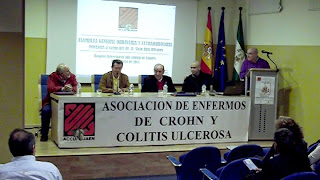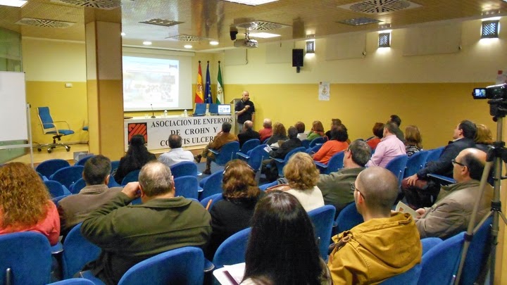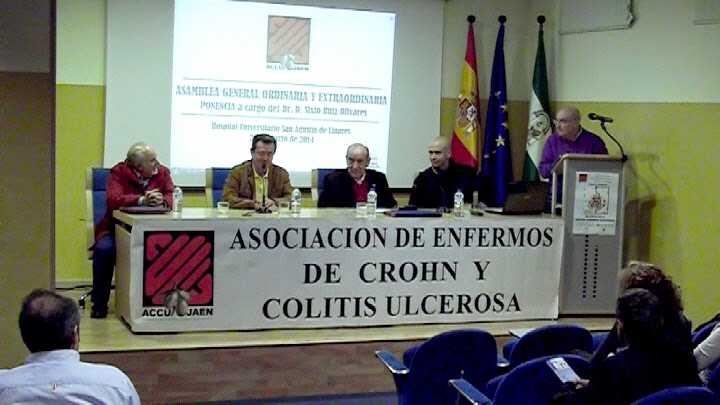 La conferencia fue impartida por el Dr. Sixto Ruiz Olivares, enfermo de Crohn y Médico Internista en el Hospital Comarcal de Inca de Mallorca, y el tema tratado fue: “¿Qué estamos dispuestos a hacer para mejorar nuestra calidad de vida?” Presidió la mesa el Alcalde del Excmo. Ayuntamiento de Linares D. Juan Fernández, que felicitó y agradeció al Dr. Ruiz por su charla dada y nos animó a seguir trabajando en la misma línea, y que nuestra asociación seguirá contando con la apoyo de Ayuntamiento para que podemas continuar desarrollando nuestra labor. En la conferencia el Dr. Sixto Ruiz nos explicó, entre otras cosas, los comportamientos que deberíamos llevar para tener una vida saludable y a la hora de afrontar nuestra enfermedad, en definitiva una charla amena y enriquecedora.